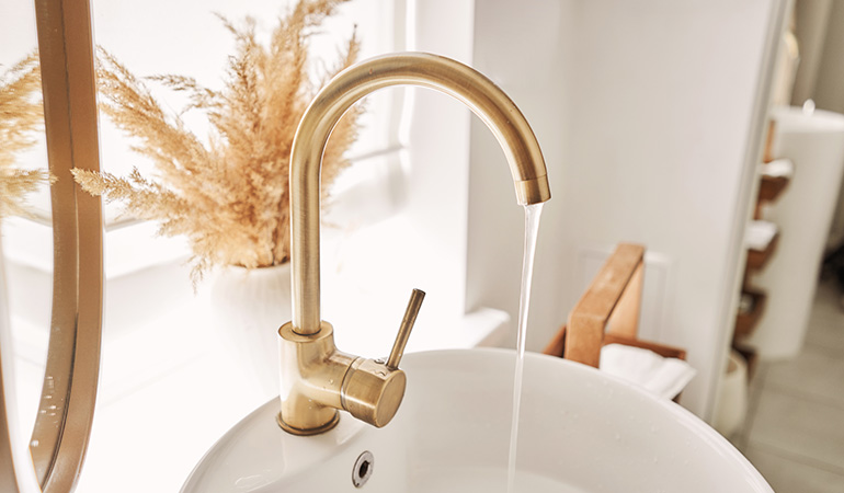 10. Gümüş musluk ile altın kulpları bir arada kullanmak, 2025’te “moda hatası” değil, trendin ta kendisi.